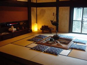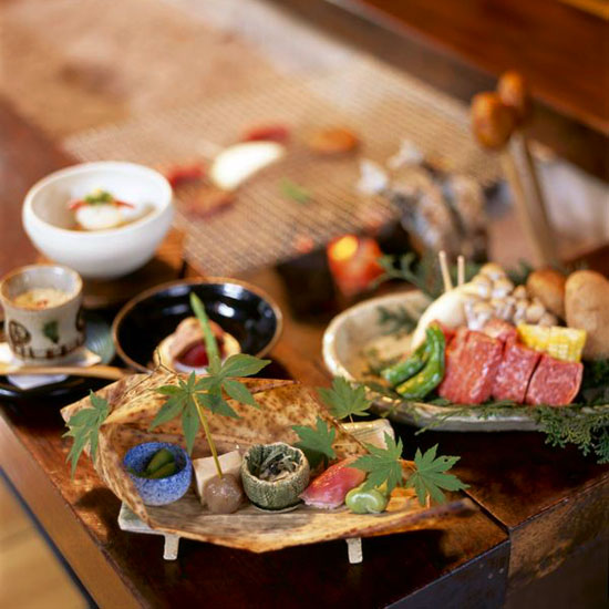個室の囲炉裏お食事処にて、飛騨牛を満喫する